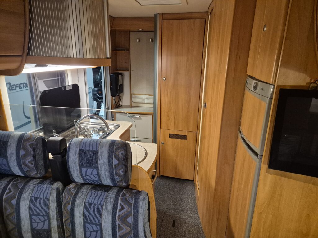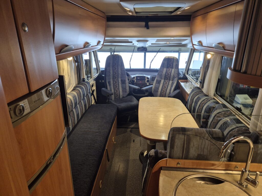 In uitstekende staat verkerende Hymer B544 van bouwjaar 2006 met de sterke Fiat 2,8 Jtd Turbodiesel, zeer ruime camper met een hele grote zitgroep waar ook een 3 persoons bed van kan worden gemaakt, comfortabel hefbed, grote koelkast met vriesvak, complete keuken, cassette toilet met wastafel en aparte douche, ringverwarming, boiler, zonnepaneel ,omvormer, gasfles met buitenvulling, fietsenrek, motorairco, elektrische ramen, geïntegreerde verduistering aan voorzijde,cruisecontrol, enz.met groene euro 4 sticker.