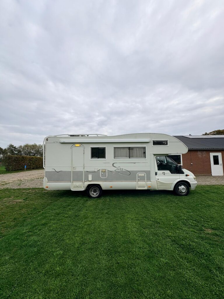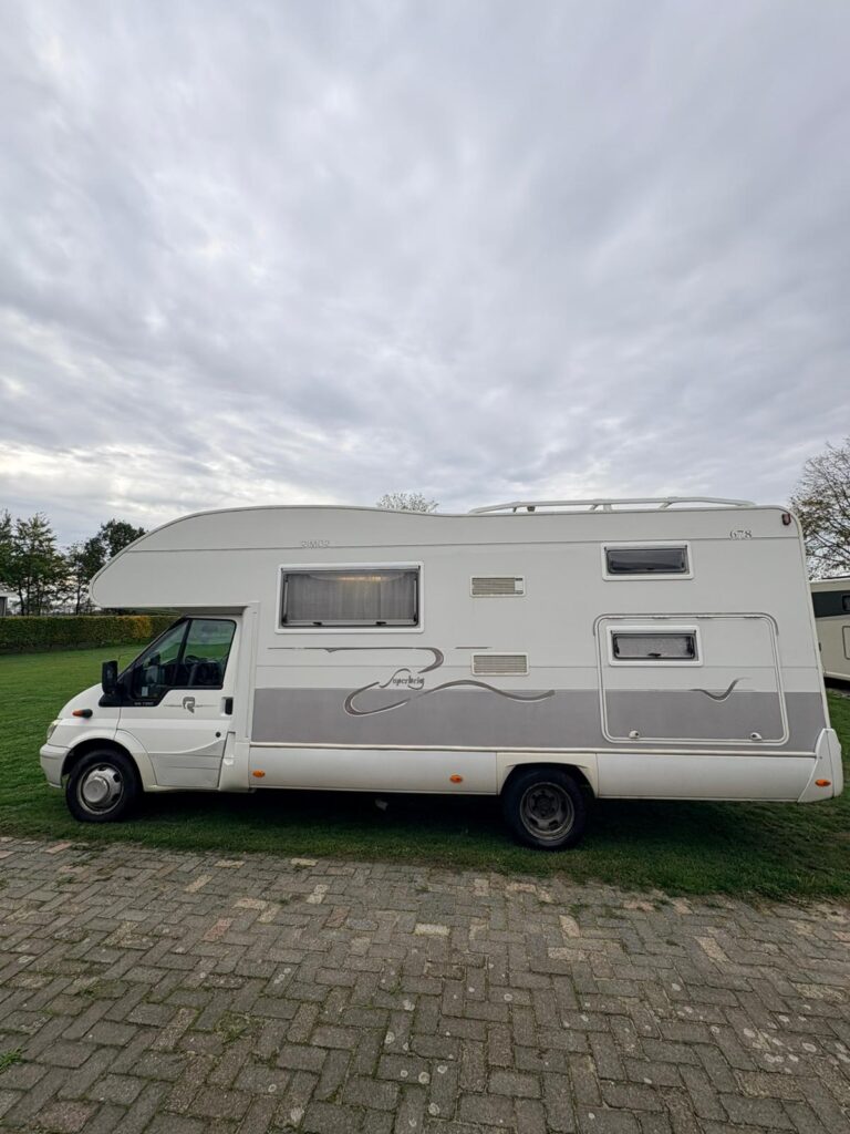 In goede staat verkerende Rimor camper van bouwjaar 2004 met dubbellucht en de sterke en betrouwbare 2,4 tdi van Ford met een lage km stand, motorairco, max fan , zonnepaneel ,enz,